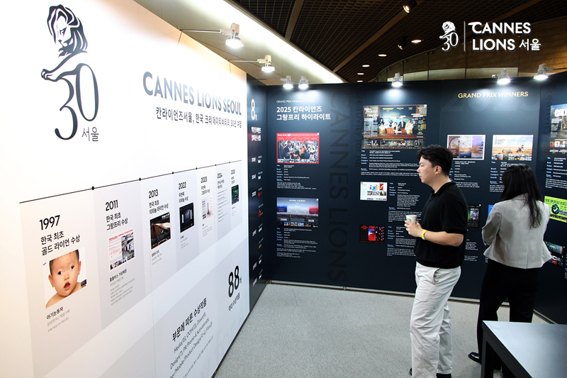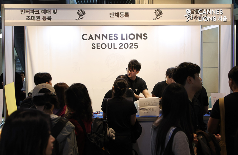 국내 최대 크리에이티비티 축제인 2025 칸라이언즈서울이 24일 서울 종로구 광화문 씨네큐브에서 개막한 가운데 전시를 관람하고 있다.2025 칸라이언즈서울은 기업 마케터, 홍보, 크리에이티브 디렉터, 미디어 종사자, 관련학과 학생 등 현업 광고 마케팅 전문가들과 예비 크리에이터들이 그해 칸라이언즈의 주요 토크와 수상작 등 글로벌 크리에이티비티 산업의 트렌드를 공유하고 토론하는 국내 최고, 최대의 크리에이티비티 축제다.2025 칸라이언즈서울은 9월 24일부터 26일까지 광화문 씨네큐브에서 열린다.