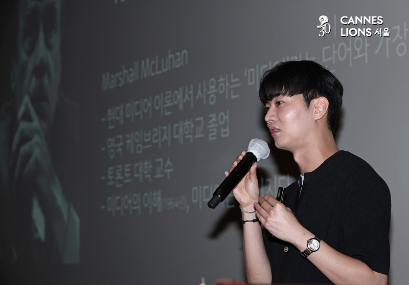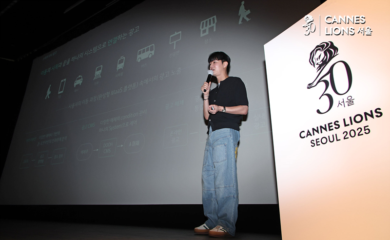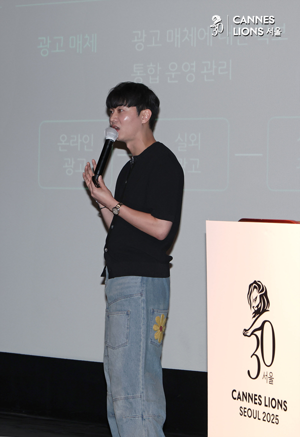 계경현 카카오모빌리티 이사가 24일 서울 종로구 광화문 씨네큐브에서 'K-Culture와 IT 기술의 만남, 온-오프라인 미디어를 활용한 미디어 마케팅'을 주제로 강연하고 있다.2025 칸라이언즈서울은 기업 마케터, 홍보, 크리에이티브 디렉터, 미디어 종사자, 관련학과 학생 등 현업 광고 마케팅 전문가들과 예비 크리에이터들이 그해 칸라이언즈의 주요 토크와 수상작 등 글로벌 크리에이티비티 산업의 트렌드를 공유하고 토론하는 국내 최고, 최대의 크리에이티비티 축제다.2025 칸라이언즈서울은 9월 24일부터 26일까지 광화문 씨네큐브에서 열린다.