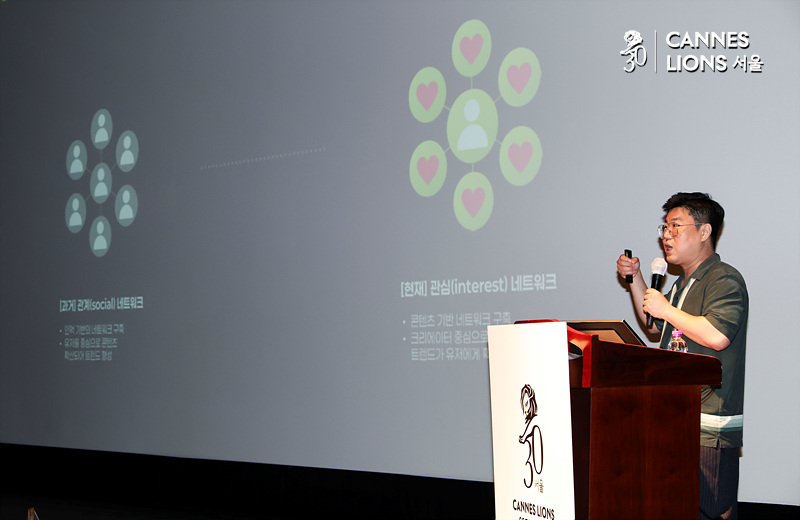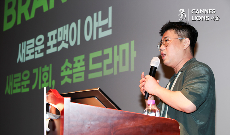 김원민 밤부네트워크 마케팅비즈니스 본부장이 24일 서울 종로구 광화문 씨네큐브에서 '브랜디드 숏폼드라마, 새로운 포맷이 아닌 새로운 기회'를 주제로 강연하고 있다.2025 칸라이언즈서울은 기업 마케터, 홍보, 크리에이티브 디렉터, 미디어 종사자, 관련학과 학생 등 현업 광고 마케팅 전문가들과 예비 크리에이터들이 그해 칸라이언즈의 주요 토크와 수상작 등 글로벌 크리에이티비티 산업의 트렌드를 공유하고 토론하는 국내 최고, 최대의 크리에이티비티 축제다.2025 칸라이언즈서울은 9월 24일부터 26일까지 광화문 씨네큐브에서 열린다.