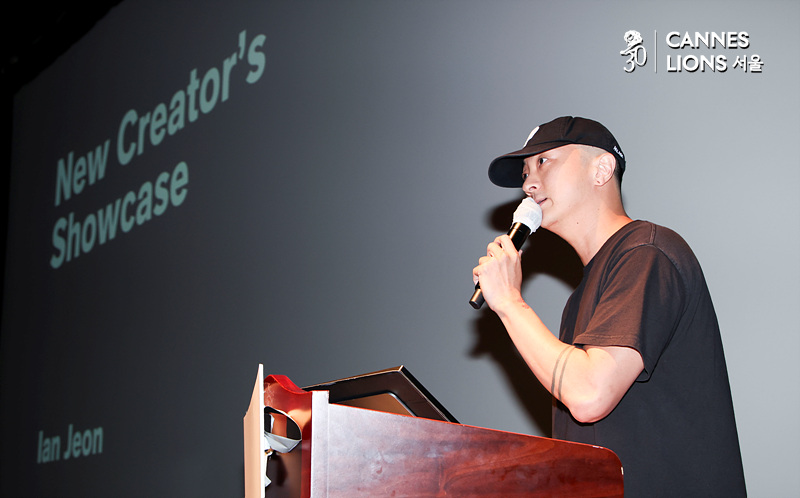 전이안 컴파운드 컬렉티브 감독이 24일 서울 종로구 광화문 씨네큐브에서 'New Creator's Showcase'를 주제로 강연하고 있다.2025 칸라이언즈서울은 기업 마케터, 홍보, 크리에이티브 디렉터, 미디어 종사자, 관련학과 학생 등 현업 광고 마케팅 전문가들과 예비 크리에이터들이 그해 칸라이언즈의 주요 토크와 수상작 등 글로벌 크리에이티비티 산업의 트렌드를 공유하고 토론하는 국내 최고, 최대의 크리에이티비티 축제다.2025 칸라이언즈서울은 9월 24일부터 26일까지 광화문 씨네큐브에서 열린다.