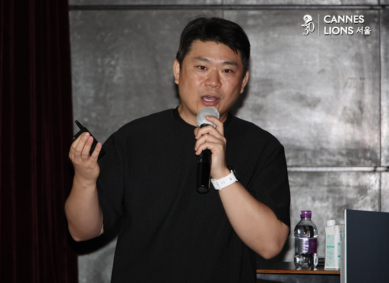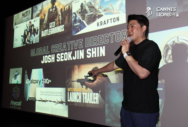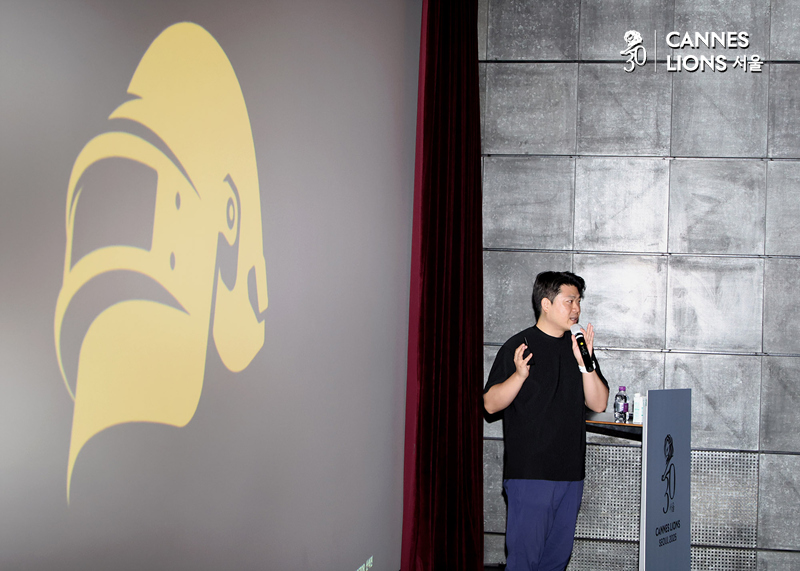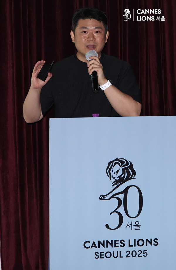 신석진 크래프톤 본부장이 26일 서울 종로구 광화문 씨네큐브에서 진행되는 2025 칸라이언즈서울에서 'Brand, Game Changer'를 주제로 강연하고 있다.