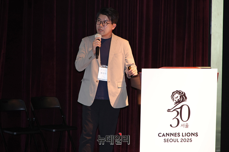 최경휘 HSAD 광고기획 팀장이 26일 서울 종로구 광화문 씨네큐브에서 진행되는 2025 칸라이언즈서울에서 '편의점의 재발견, CU마음보관 캠페인'를 주제로 강연하고 있다.