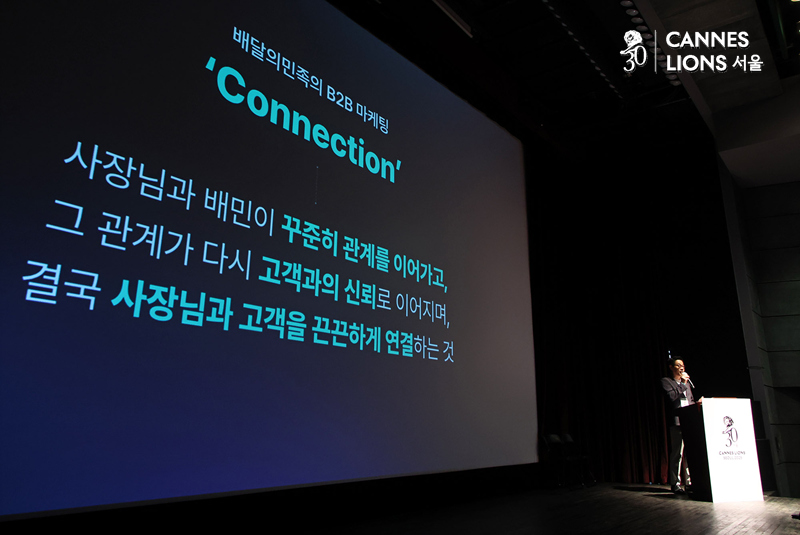 권용규 우아한형제들 상무가 26일 서울 종로구 광화문 씨네큐브에서 진행되는 2025 칸라이언즈서울에서 'From Delivery to Connection 배달의민족이 만들어가는 Digital Hospitality'를 주제로 강연하고 있다.'2025 칸라이언즈서울'은 올해 6월 프랑스 칸에서 열린 칸라이언즈 주요 토크와 수상작 등 글로벌 크리에이티비티 산업의 트렌드를 공유하고 토론하는 국내 최고, 최대의 크리에이티비티 축제다. 26일까지 광화문 씨네큐브에서 열린다.