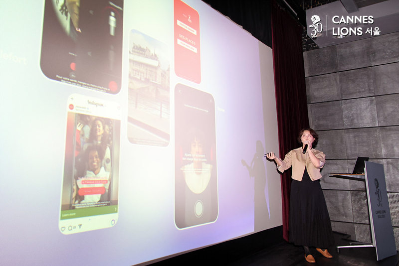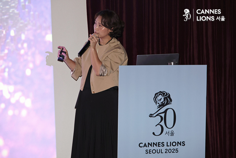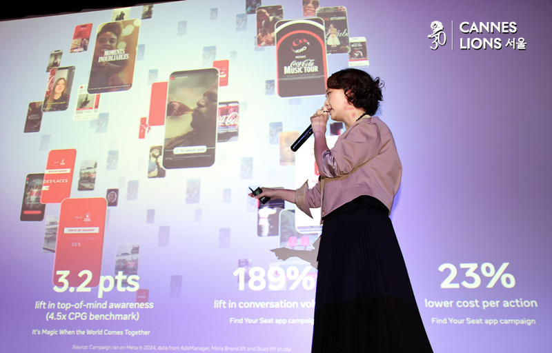 이연주 메타 Creative Strategist가 26일 서울 종로구 광화문 씨네큐브에서 진행되는 2025 칸라이언즈서울에서 'Big Idea? 이제는 Small Moments. AI가 그 합을 완성한다'를 주제로 강연하고 있다.'2025 칸라이언즈서울'은 올해 6월 프랑스 칸에서 열린 칸라이언즈 주요 토크와 수상작 등 글로벌 크리에이티비티 산업의 트렌드를 공유하고 토론하는 국내 최고, 최대의 크리에이티비티 축제다. 26일까지 광화문 씨네큐브에서 열린다.