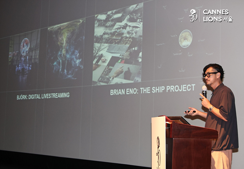 나오키 다나카(Naoki Tanaka) 덴츠 CCO가 26일 서울 종로구 광화문 씨네큐브에서 진행되는 2025 칸라이언즈서울에서 'Unlocking Innovation: The Power of Play'를 주제로 강연하고 있다.나오키 다나카는 2025 칸라이언즈 디지털 크래프트(DIGITAL CRAFT) 라이언즈 심사위원장을 역임했다.'2025 칸라이언즈서울'은 올해 6월 프랑스 칸에서 열린 칸라이언즈 주요 토크와 수상작 등 글로벌 크리에이티비티 산업의 트렌드를 공유하고 토론하는 국내 최고, 최대의 크리에이티비티 축제다. 26일까지 광화문 씨네큐브에서 열린다.