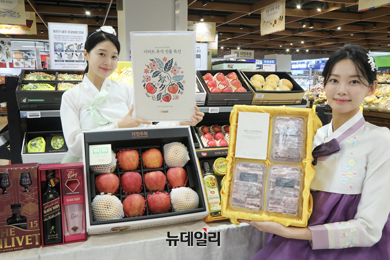 이마트가 추석 연휴를 약 열흘 앞두고 추석 선물세트 본 판매에 돌입한다.이마트는 9월 27일부터 10월 6일 추석 당일까지 총 10일동안 행사카드를 통한 최대 50% 할인 혜택과 더불어 결제 금액대별 신세계상품권 최대 50만원을 증정한다.이번 본 판매는 지난 사전예약 기간의 매출 데이터를 분석해 사전예약 혜택을 연장하는 한편 고객 맞춤형 본 판매 전용 선물세트를 구성한 것이 특징이다. 이마트 선물세트는 SSG닷컴 이마트몰에서도 대부분 구매 가능하다.먼저, 축산 선물세트에서는 10만원대 초반의 본 판매 전용 한우 세트를 20% 할인가에 선보인다. ‘피코크 한우갈비 등심세트(등심 500g, 한우 갈비 800g, 양념소스)’를 행사가 110,400원에, ‘피코크 한우 갈비세트 3호 (갈비 800g*2, 양념소스)’를 112,000원에 판매한다.주류 선물세트는 고객 맞춤형 가격대로 특별 기획했다. 이마트 단독으로 전용잔을 함께 증정하는 ‘글렌알라키 12년(700ml, 영국)’을 96,800원에, 미국에서 카버네 소비뇽을 가장 잘 다루는 와이너리라고 평가받는 ‘케이머스 카버네 소비뇽 2022(750ml, 미국)’를 148,000원에 판매한다. (사진=이마트)