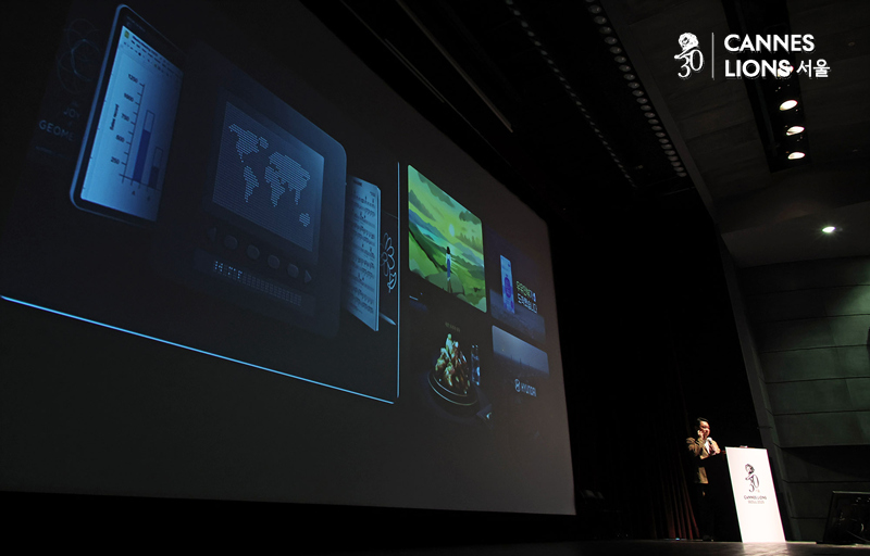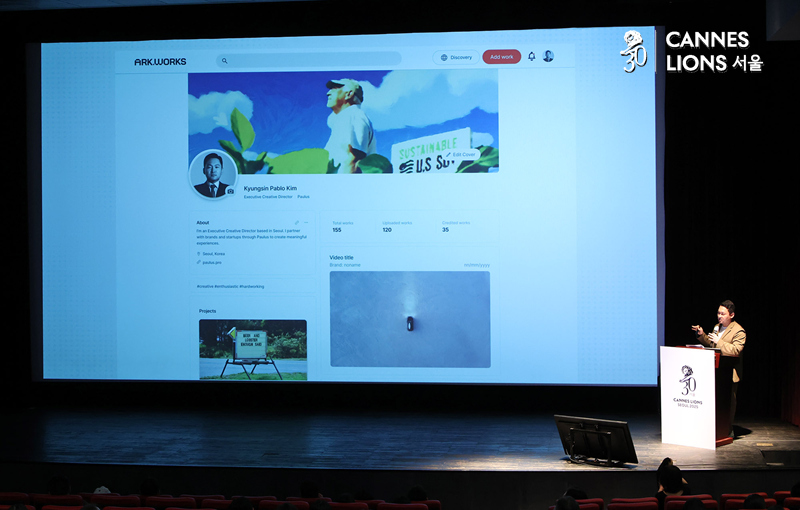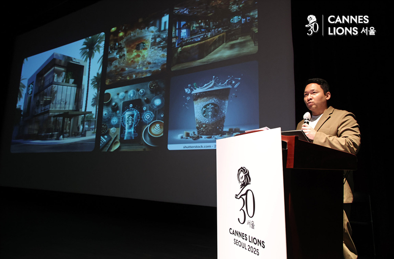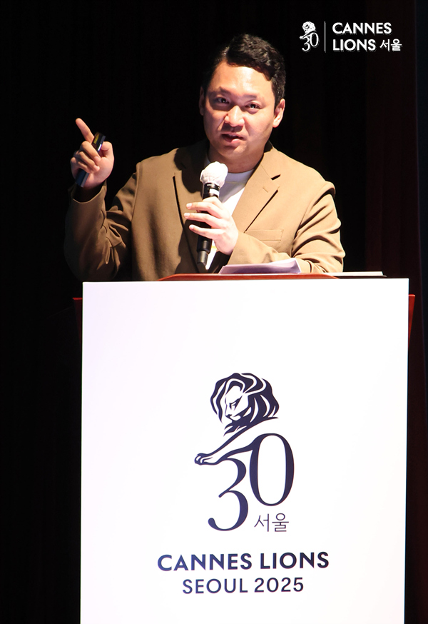 김경신 파울러스 ECD가 26일 서울 종로구 광화문 씨네큐브에서 진행되는 2025 칸라이언즈서울에서 'Creativity vs AI, How to Harmonise?'를 주제로 강연하고 있다.