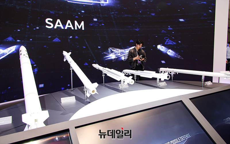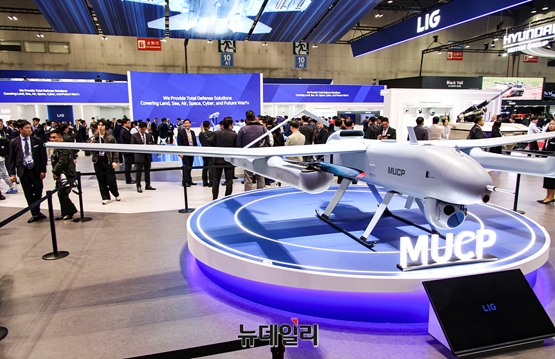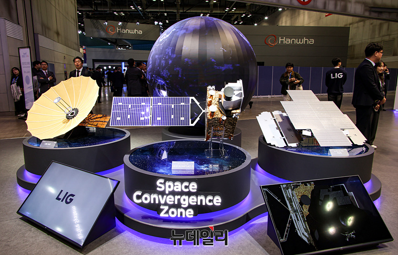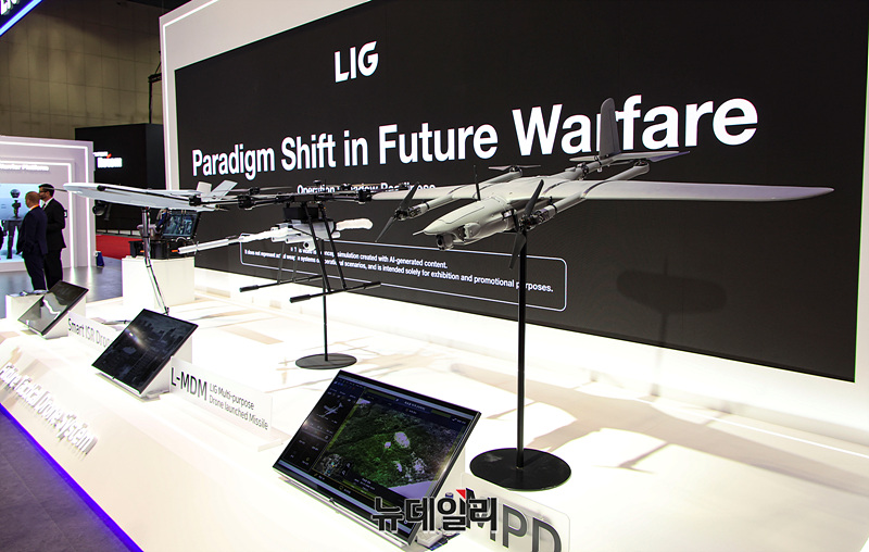 LIG NEX1이 20일 오전 경기 고양시 일산 킨텍스 제2전시장에서 열린 2025 서울 국제 항공우주 및 방위산업 전시회에서 첨단 장비를 선보이고 있다. (경기 고양=서성진 기자)