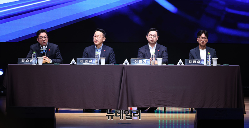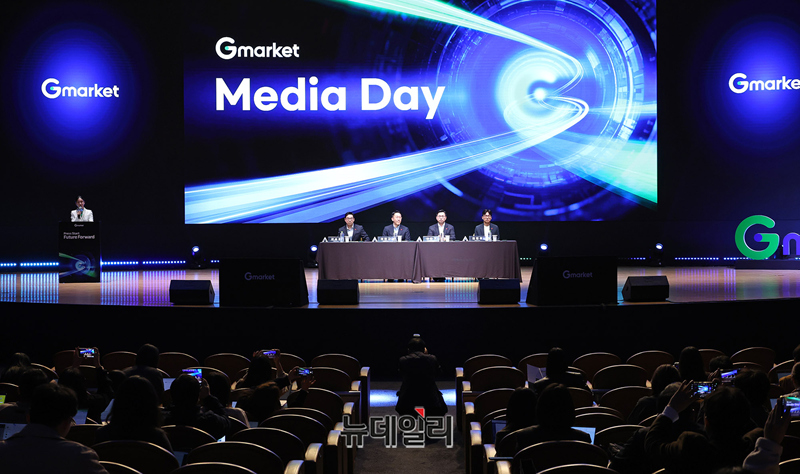 제임스 장(장승환) 지마켓 대표(왼쪽부터), 이민규 영업본부장, 이민기 셀러성장담당, 김정우 PX본부장이 21일 오전 서울 강남구 코엑스에서 열린 지마켓 미디어데이에서 취재진의 질의에 답하고 있다.장 대표는 "지마켓이 다시 한번 국내 1등 오픈마켓으로 올라서기 위해 '국내 경쟁력 강화'와 '글로벌 확장'의 중장기 전략을 본격 추진할 것"이라고 밝혔다.지마켓은 '글로벌-로컬마켓' 실현을 위해 초기 비용으로 약 7,000억원을 투입할 예정이다.
