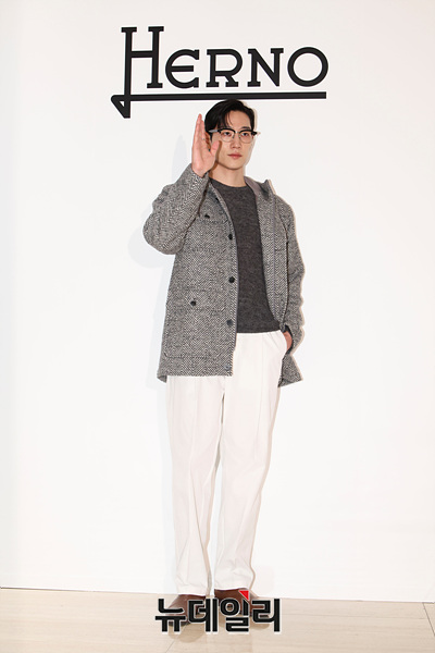 배우 노상현이 24일 오후 서울 중구 신세계백화점 본점에서 열린 에르노 25FW 컬렉션 오픈 이벤트 포토월에서 포즈를 취하고 있다.