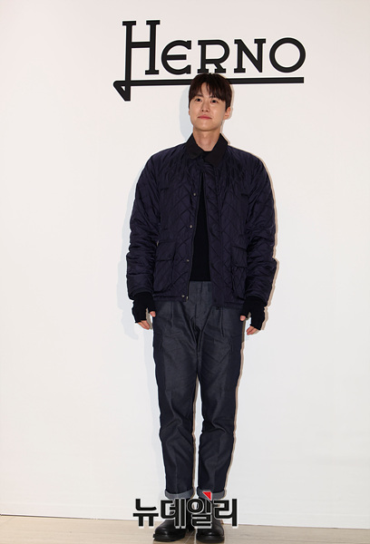 배우 공명이 24일 오후 서울 중구 신세계백화점 본점에서 열린 에르노 25FW 컬렉션 오픈 이벤트 포토월에서 포즈를 취하고 있다.