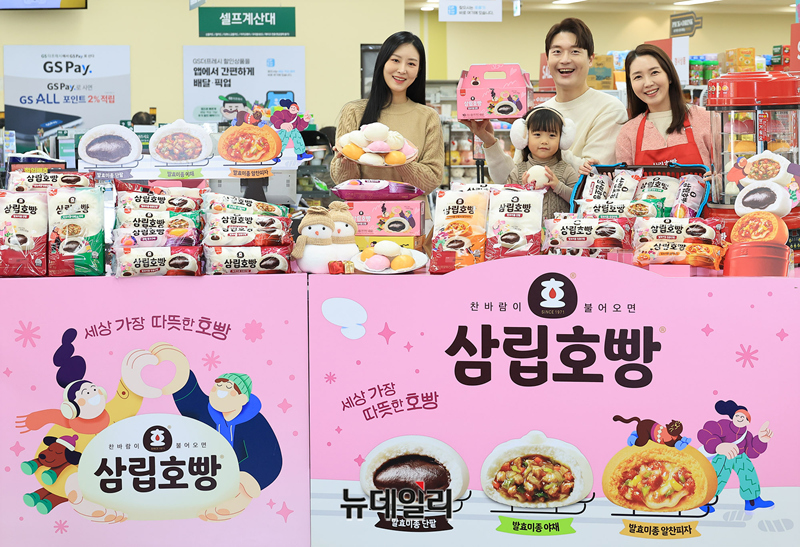 SPC삼립이 28일 오전 서울 강동구 GS더프레시 명일점에서 겨울 대표제품 삼립호빵 2025 시즌 신제품 14종을 선보이고 있다.새롭게 선보이는 삼립호빵은 다양한 패키지 구성으로 고객 선택의 폭을 넓히고, 간식을 넘어 식사 대용으로도 좋은 제품들로 구성한 것이 특징이다.