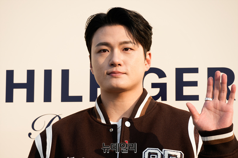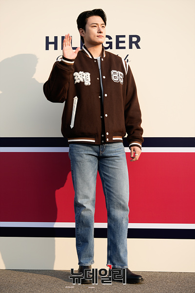 배우 신승호가 28일 오후 서울 강남구 코엑스 RF 주차장에서 열린 더 힐피거 레이싱 클럽 포토월에서 포즈를 취하고 있다.