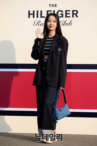 배우 김소현이 28일 오후 서울 강남구 코엑스 RF 주차장에서 열린 더 힐피거 레이싱 클럽 포토월에서 포즈를 취하고 있다.