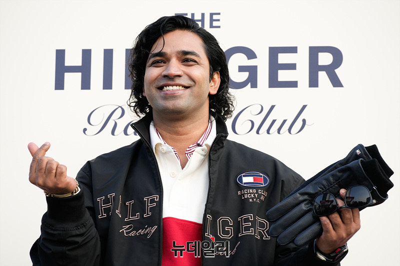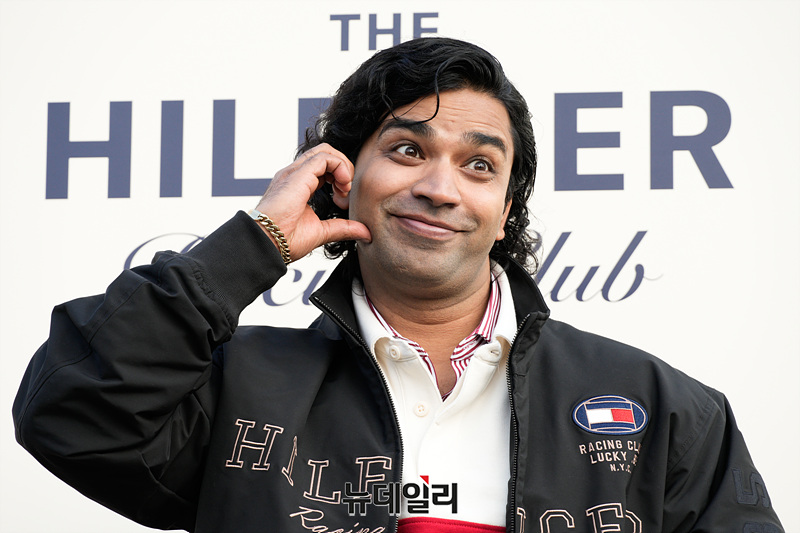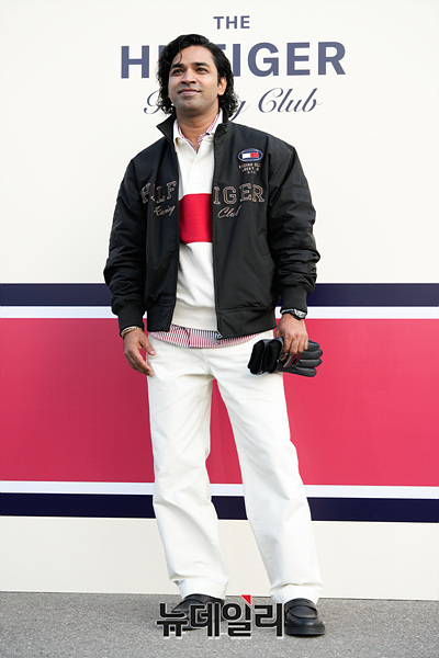 배우 아누팜이 28일 오후 서울 강남구 코엑스 RF 주차장에서 열린 더 힐피거 레이싱 클럽 포토월에서 포즈를 취하고 있다.