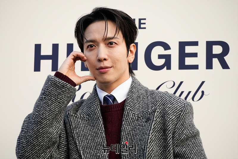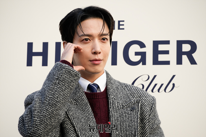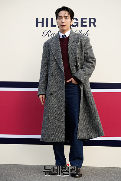 가수 겸 배우 정용화가 28일 오후 서울 강남구 코엑스 RF 주차장에서 열린 더 힐피거 레이싱 클럽 포토월에서 포즈를 취하고 있다.