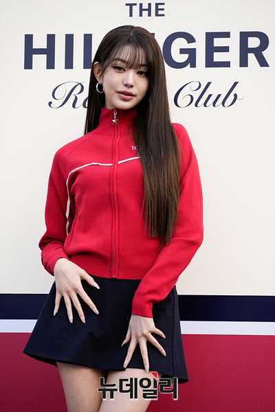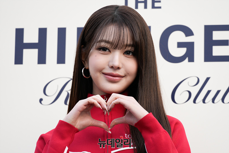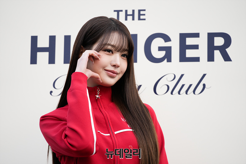 아이브 장원영이 28일 오후 서울 강남구 코엑스 RF 주차장에서 열린 더 힐피거 레이싱 클럽 포토월에서 포즈를 취하고 있다.