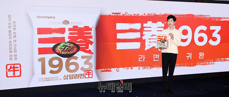 '삼양1963'은 1960년대 삼양라면의 레시피를 현대적으로 재해석해 맛과 풍미를 종합적으로 향상시킨 프리미엄 라면이다.