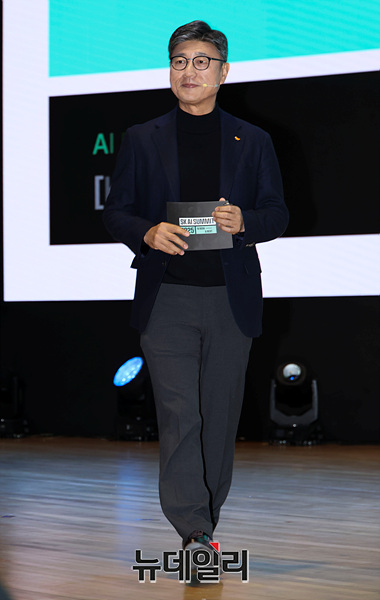 [포토] SK AI 서밋, 발표하는 정재헌 SKT 사장