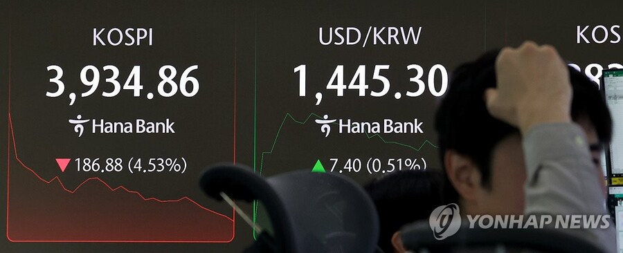 외국인들의 대량 매도에도 개인들이 2조원대 매수세를 보이면서 낙폭을 일부 만회, '사천피'를 회복한 채 장을 마감했다.5일 한국거래소에 따르면 이날 코스피는 장 중 250포인트, 6% 이상 대폭락하기도 했지만 외국인의 매물을 개인들이 사들이면서 4000포인트를 지켰다.이날 오전 지수는 최대 6.16% 하락하며 3900선 아래까지 떨어졌으나, 개인들의 저가 매수세가 유입되며 낙폭을 만회했다.코스피는 전 거래일(4121.74)보다 117.32포인트(2.85%) 내린 4004.42에 마감했고 코스닥 지수는 전 거래일(926.57)보다 24.68포인트(2.66%) 하락한 901.89에 거래를 마쳤다.원·달러 환율은 전 거래일 주간거래 종가(1437.9원)보다 11.5원 오른 1449.4원에 주간 거래를 마무리했다.'AI거품론' 속 외국인들이 대량 투매에 나서면서 '사이드카'까지 발동됐으나 개인이 방어에 나서면서 낙폭을 일부 만회하는 롤러코스터 장세를 연출했다.