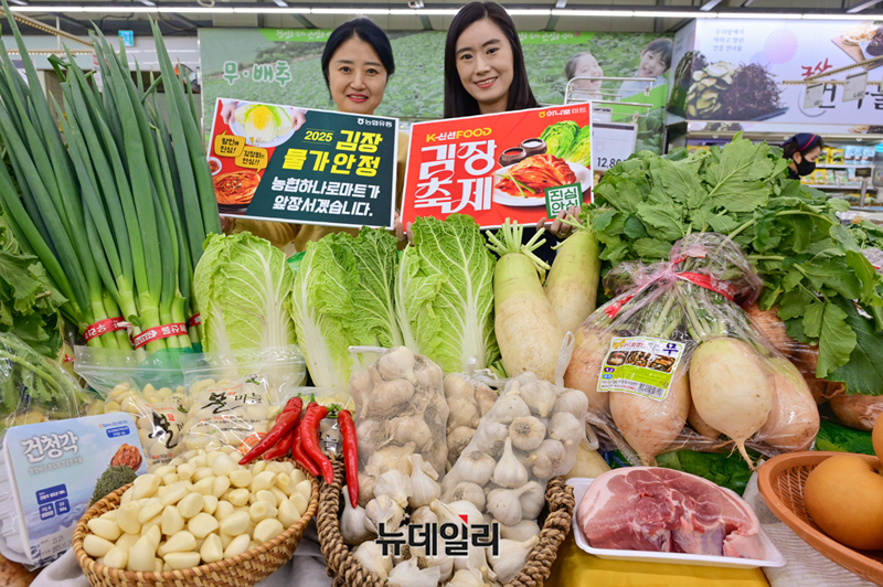 농식품 전문 매장 농협 하나로마트를 운영하는 농협유통(대표이사 이동근)은 본격적인 김장철을 맞아 11월 13일부터 26일까지 '김장 축제'를 벌인다.'K-김장 대축제'는 김장재료와 김장 용품 모음전을 비롯해 국물 라면·겨울 간편식 등 인기 상품을 초특가로 만날 수 있는 고객 혜택이 가득 담긴 행사다.또 상품 할인 판매와 함께 고객 참여 이벤트와 주요 상품을 초특가로 판매하는 오픈런(오전 시간)과 타임세일런(오후 시간)도 마련돼 있다. 농협유통 하나로마트 자체 할인과 제휴 카드 할인은 꼭 챙겨야할 혜택이다.주요 행사 상품은 배추(3입/망/12,480원(행사 카드)), 다발무(1단/12,400원(행사 카드)), 양파(3kg/망/5,980원), 홍·청갓(800g/단/각 4,380원)등이다. 여기에 프로포크 삼겹살을 100g당 2,090원에 판매한다. 특히 'K-김장 대축제' 행사 기간 소 한 마리·돼지 한 마리 행사는 놓칠 수 없는 초특가 행사다. (사진=농협유통)