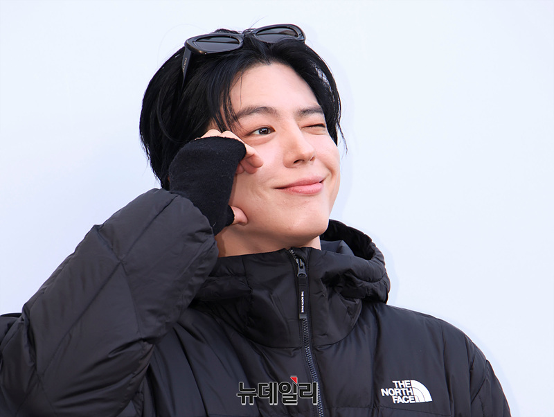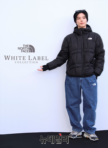 글로벌 아웃도어 브랜드 노스페이스 홍보대사 박보검이 15일 오후 서울 성동구 노스페이스 화이트라벨 첫 플래그십 스토어에서 열린 오픈 기념 포토월에서 포즈를 취하고 있다.