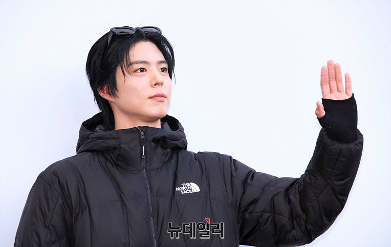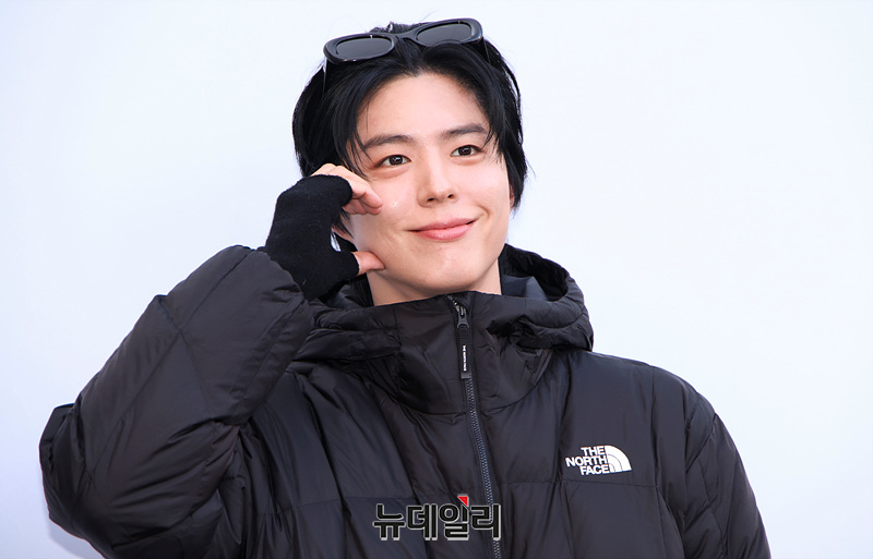 글로벌 아웃도어 브랜드 노스페이스 홍보대사 박보검이 15일 오후 서울 성동구 노스페이스 화이트라벨 첫 플래그십 스토어에서 열린 오픈 기념 포토월에서 포즈를 취하고 있다.