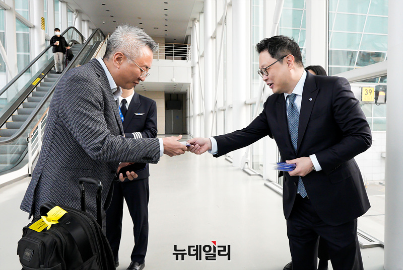 [포토] 기념품 전달하는 윤철민 파라타항공 대표