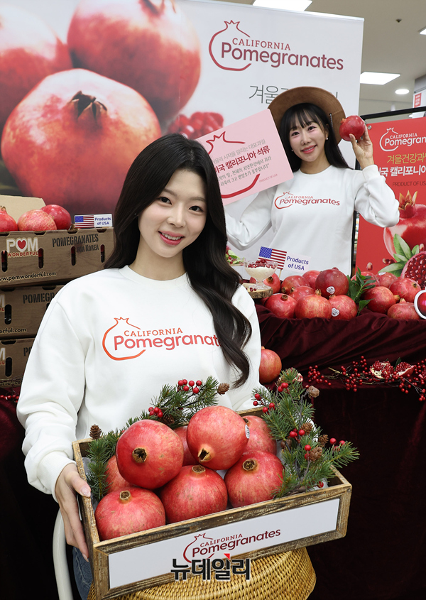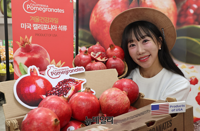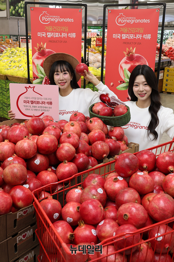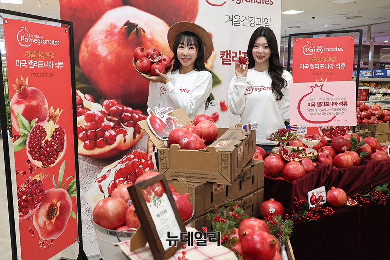 미국석류협회가 18일 오전 서울 중구 롯데마트 제타플렉스 서울역점에서 미국 캘리포니아석류 출시를 소개하고 있다.캘리포니아에서 주로 생산되는 미국석류는 색이 진하고 과육이 크고 단단하며 과피가 팽팽한 것이 특징이다.'과일의 붉은 보석'이라고 불리며 화려한 색과 아름다운 모양으로 겨울철 장식욜 소품으로 활용되거나 부와 명예를 가져 준다고해 그림의 단골 주제로 사용된다.11일 20일부터 롯데마트 전 매장에서 특대사이즈를 4,990원 행사가로 구입 가능하다.