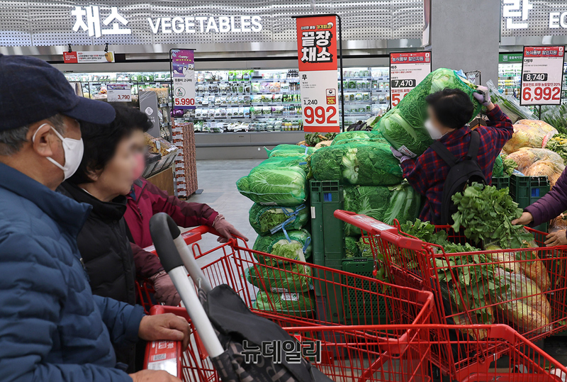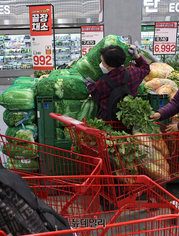 김장철을 앞두고 서울시내 한 대형마트를 방문한 고객들이 18일 오전 김장을 준비하기 위해 재료를 구입하고 있다.