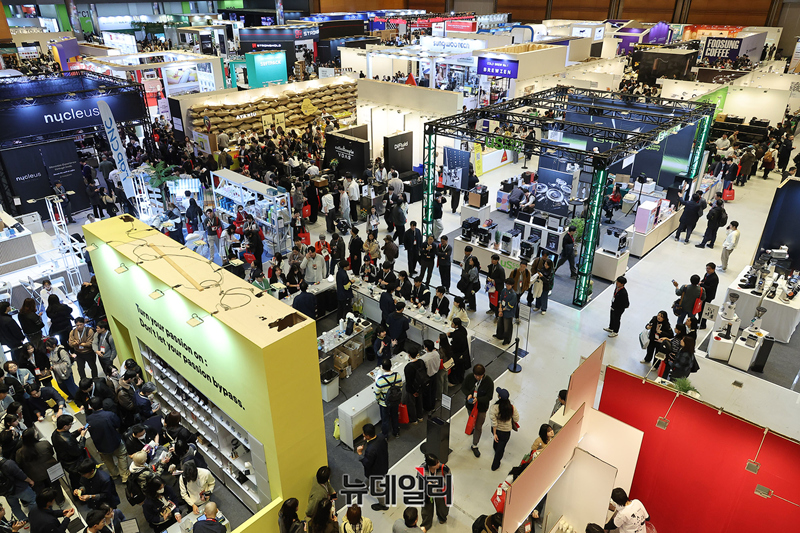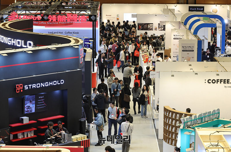 제24회 서울카페쇼(The 24th SEOUL Int’l Cafe Show)가 19일 오전 서울 강남구 코엑스에서 개막한 가운데 관람객들이 전시장을 관람하고 있다.서울카페쇼는 커피 산업의 오늘과 내일을 아우르는 B2B 플랫폼으로 전 세계 35개국, 631개사, 3,903개 브랜드가 참가해 각국의 커피 향미, 트렌드, 기술, 문화를 한자리에서 선보인다.'한 잔에 담긴, 더 큰 커피 세상(One Cup, All Worlds)'을 주제로 11월 19일부터 22일까지 코엑스 전관에서 개최된다.