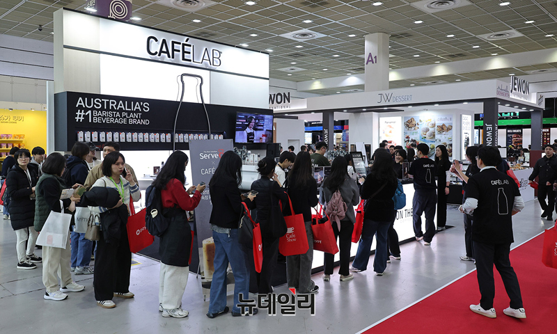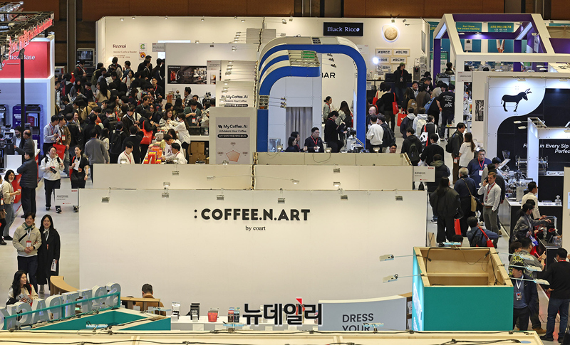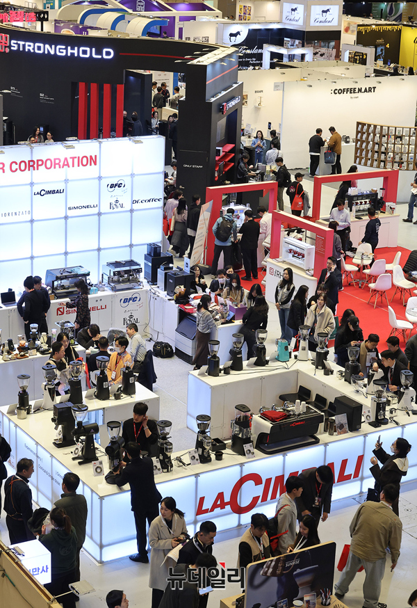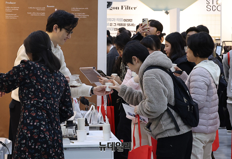 제24회 서울카페쇼(The 24th SEOUL Int’l Cafe Show)가 19일 오전 서울 강남구 코엑스에서 개막한 가운데 관람객들이 음료 시음을 하고 있다.서울카페쇼는 커피 산업의 오늘과 내일을 아우르는 B2B 플랫폼으로 전 세계 35개국, 631개사, 3,903개 브랜드가 참가해 각국의 커피 향미, 트렌드, 기술, 문화를 한자리에서 선보인다.한 잔에 담긴, 더 큰 커피 세상(One Cup, All Worlds)을 주제로 11월 19일부터 22일까지 코엑스 전관에서 개최된다.