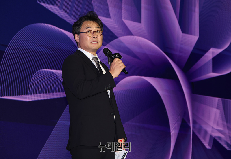 김한모 한국부동산개발협회 기념사업단장이 오후 서울 강남구 그랜드 인터컨티넨탈 서울 파르나스에서 열린 한국부동산개발협회(KODA, Korea Developer Association) 창립 20주년 기념행사에서 새 CI를 소개하고 있다.이날 기념행사에는 비전 선포식을 통해 향후 20년간 KODA가 지향할 △공공성과 투명성 강화 △데이터 기반 산업 혁신 △금융 안정성 및 리스크 관리체계 확립 △ESG 기반 도시개발 △글로벌 네트워크 확장 등을 중심으로 한 비전을 발표했다.