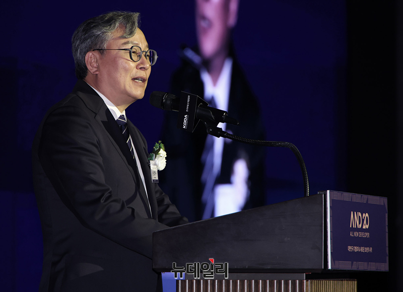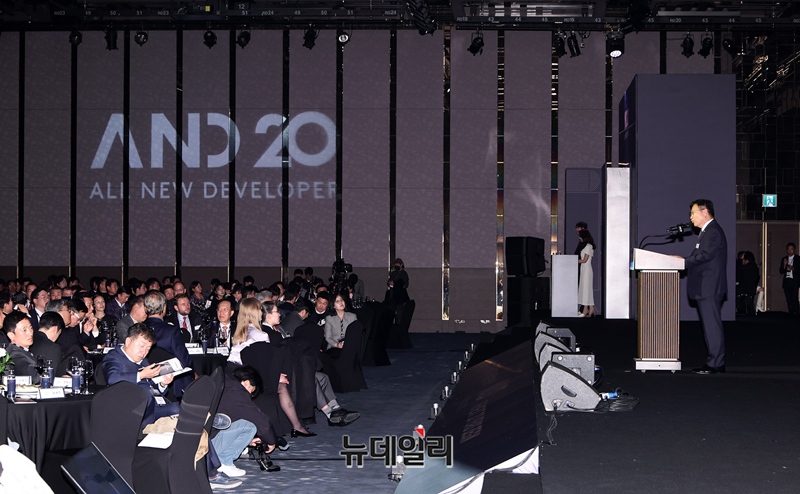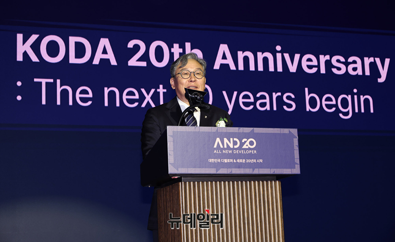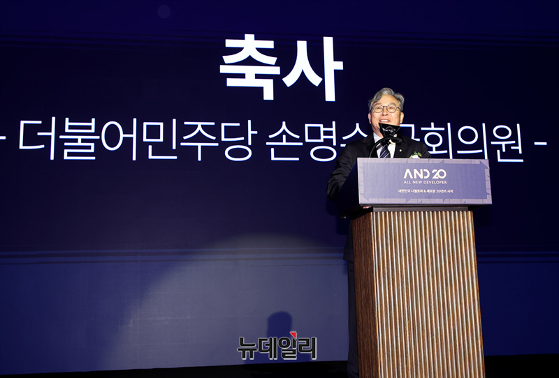 손명수 더불어민주당 의원이 20일 오후 서울 강남구 그랜드 인터컨티넨탈 서울 파르나스에서 열린 한국부동산개발협회(KODA, Korea Developer Association) 창립 20주년 기념행사에서 축사를 하고 있다.이날 기념행사에는 비전 선포식을 통해 향후 20년간 KODA가 지향할 △공공성과 투명성 강화 △데이터 기반 산업 혁신 △금융 안정성 및 리스크 관리체계 확립 △ESG 기반 도시개발 △글로벌 네트워크 확장 등을 중심으로 한 비전을 발표했다. 또 한국디벨로퍼협회로 협회명을 바꾸고, 새 CI를 공개했다.