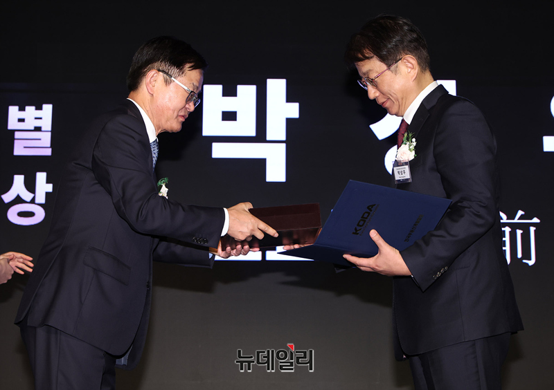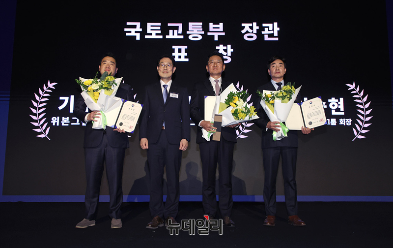 김대건 리건그룹 회장, 이승현 시티인벤테라그룹 회장, 기세도 위본그룹 회장(대리수상)이 20일 오후 서울 강남구 그랜드 인터컨티넨탈 서울 파르나스에서 열린 한국부동산개발협회(KODA, Korea Developer Association) 창립 20주년 기념행사에서 국토교통부 장관 표창을 수상하고 기념촬영을 하고 있다.이날 기념행사에는 비전 선포식을 통해 향후 20년간 KODA가 지향할 △공공성과 투명성 강화 △데이터 기반 산업 혁신 △금융 안정성 및 리스크 관리체계 확립 △ESG 기반 도시개발 △글로벌 네트워크 확장 등을 중심으로 한 비전을 발표했다. 또 한국디벨로퍼협회로 협회명을 바꾸고, 새 CI를 공개했다.
