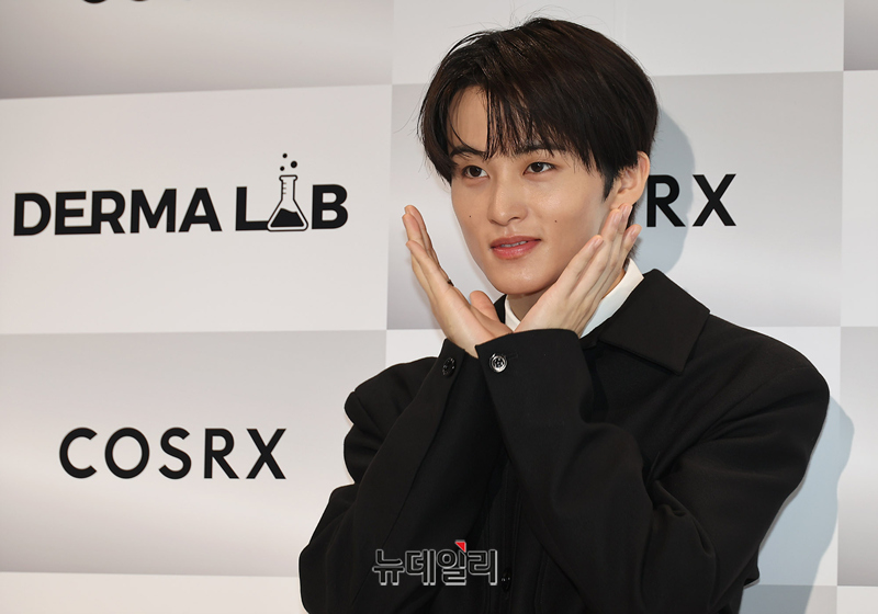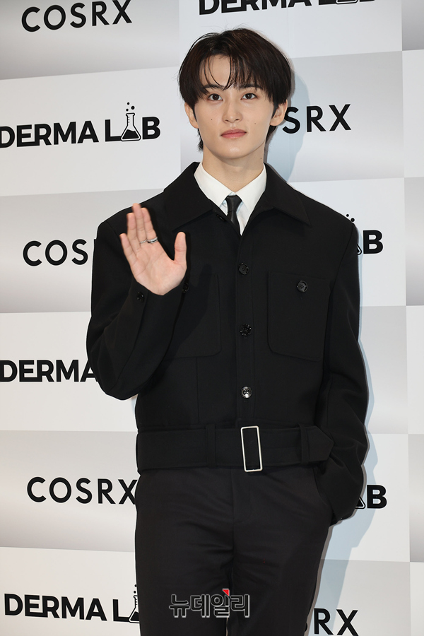 NCT 마크가 24일 서울 성동구 스테이지 35에서 열린 코스알엑스(COSRX) 더마랩 팝업 오픈 행사에 참석해 포즈를 취하고 있다.