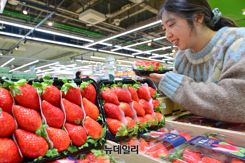 농식품 전문 매장 농협 하나로마트를 운영하는 농협유통(대표이사 이동근)은 25일 딸기의 고장인 충남 논산지역에서 출하된 '킹스베리'를 올해 처음 판매한다.이번에 판매하는 '킹스베리'는 우리나라에서 자체 개발한 신품종 딸기로 일반 딸기보다 2배 이상 크고 부드러운 과육과 풍부한 과즙을 느낄 수 있으며 은은한 복숭아향이 난다.농협유통 관계자는 "맛은 물론 식감과 딸기 향이 좋아 남녀노소 모두에게 인기가 많다"며 "입속 가득 차도록 먹을 수 있어, 특히 어린아이들이 좋아한다"고 말했다. (사진=농협유통)