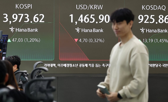 코스피 0.78% 하락 3895선 …기관 1321억원 순매도에 주저앉아 코스닥 1.62% 급등 927선 … 기관 1492억원 '나홀로 매수' 반도체 투톱 하락 전환 … 자동차·방산 약세,바이오·보안주 강세