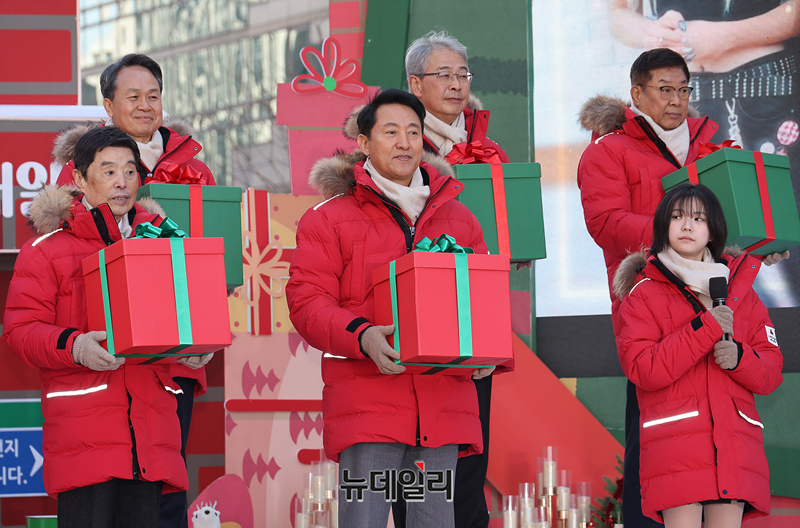 오세훈 서울시장이 1일 오후 서울 광화문광장에서 열린 ‘희망2026나눔캠페인’ 사랑의 열매 출범식에서 인사말을 하고 있다. 사랑의열매 올해 기부 목표금액은 4,500억 원이다. 12월 1일부터 내년 1월 31일까지 62일간 대국민 연말연시 집중 모금 캠페인을 진행한다.
