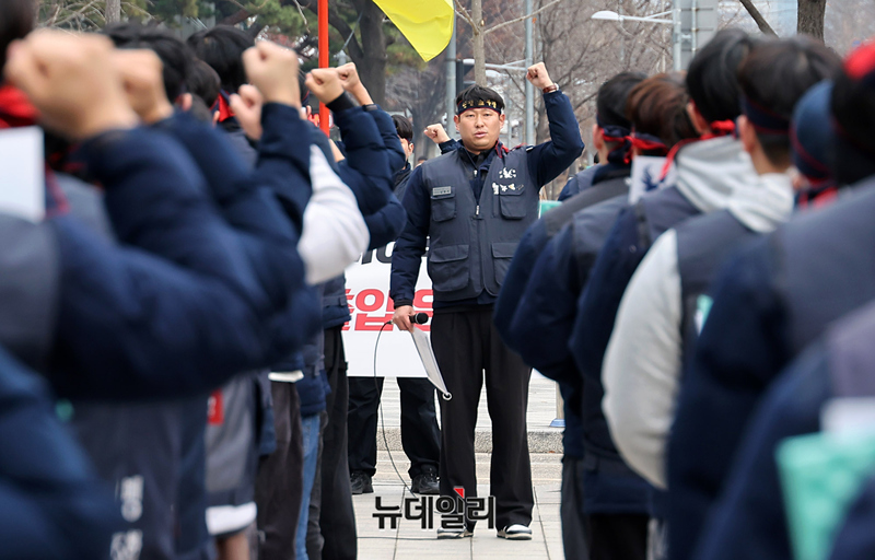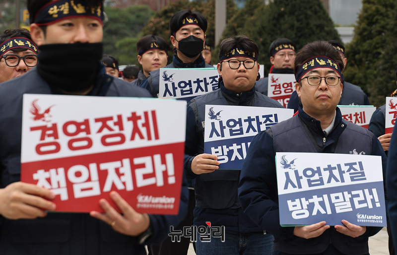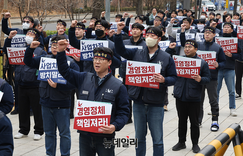 [포토] 사장 없는 KAI, 노조 상경집회 '경영정체, 사업차질 책임져라'