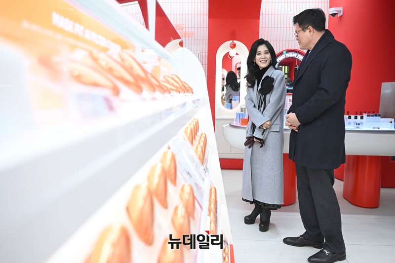 이부진(호텔신라 대표이사) 한국방문의해위원장과 김대현 문화체육관광부 2차관이 2026 코리아그랜드세일 개막일인 17일 오전 서울 중구 명동 티르티르 매장을 방문하고 있다.