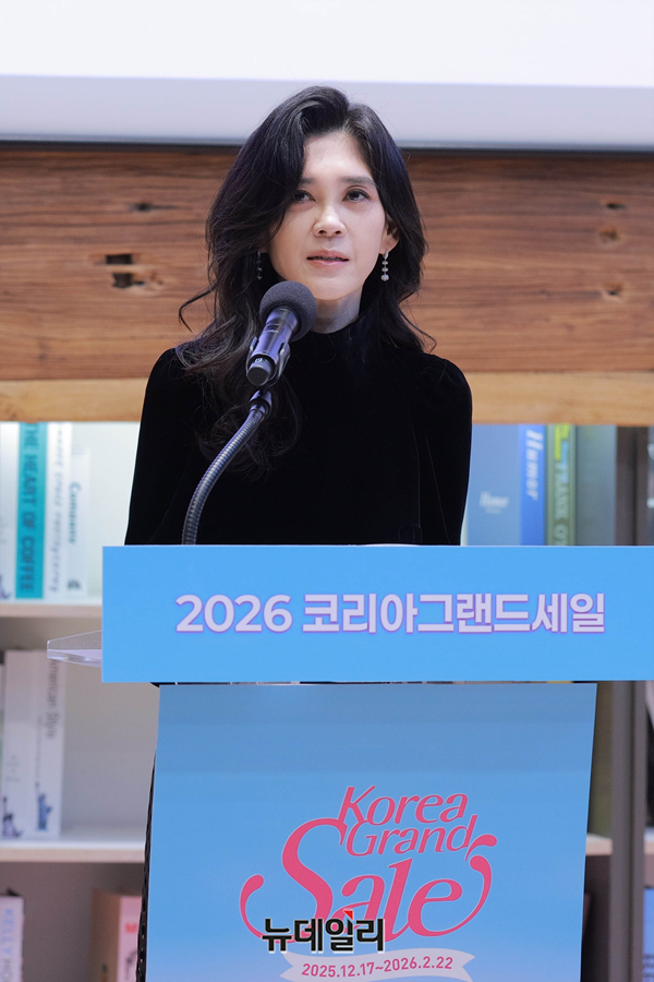 이부진 한국방문의해위원회 위원장이 17일 오전 서울 중구 커뮤니티하우스 마실에서 열린 '2026 코리아그랜드세일 개막행사'에서 개회사를 하고 있다.
