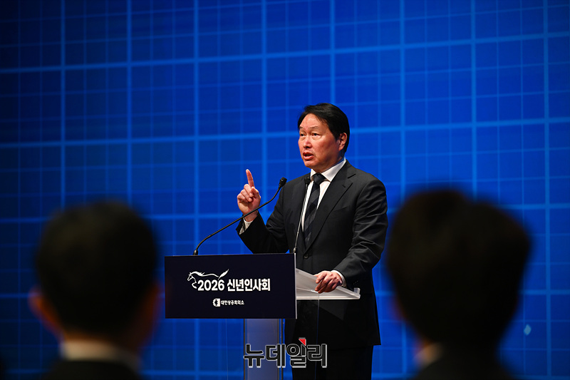 최태원 대한상공회의소 회장이 2일 오후 서울 중구 대한상공회의소에서 열린 2026년 경제계 신년인사회에서 인사말을 하고 있다. (사진=공동취재단)