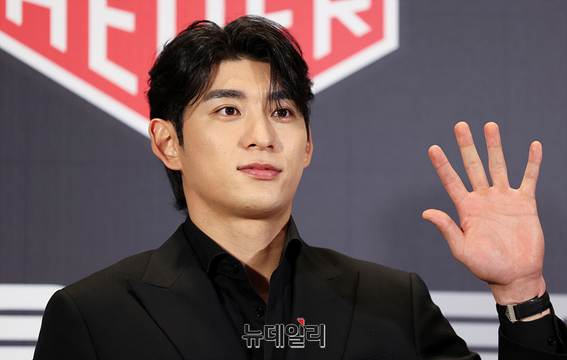 미국프로야구 메이저리그(MLB) 샌프란시스코 자이언츠의 이정후가 5일 오후 서울 강남구 웨스틴 서울 파르나스에서 열린 태그호이어 브랜드 앰배서더 발표 기념 포토월에서 포즈를 취하고 있다.