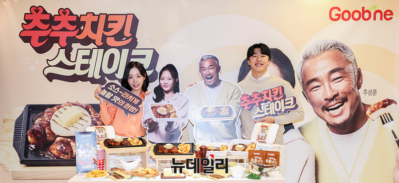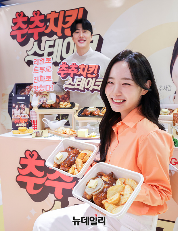 오븐요리 프랜차이즈 굽네치킨이 6일 오전 서울 마포구 굽네 플레이타운에서 신제품 '추추 치킨 스테이크'를 선보이고 있다.신제품 ‘추추 치킨 스테이크’는 굽네의 독보적인 오븐구이 기술력과 ‘소스 맛집’ 노하우를 집약한 메뉴다. 오븐에 구워 기름기는 줄이고 촉촉한 식감은 극대화하고 특제 스테이크 소스와 버터로 풍부한 감칠맛을 구현한 것이 특징이다. 웨지 감자와 구운 양파를 함께 구성해 집에서도 레스토랑 수준의 한 끼를 즐길 수 있도록 했다. .굽네치킨은 신제품 광고 모델로 추성훈·추사랑을 발탁해 실제 부녀 사이의 자연스러운 교감을 통해 '함께 즐길 때 더 맛있다'는 메시지를 직관적이고 진정성 있게 전달하는 데 집중했다.굽네치킨은 '새해엔 추추 한입해' 'MZ샷 따라하기' 등 부녀의 유쾌한 일상을 담은 숏폼 콘텐츠를 지속적으로 선보이며 소비자들과의 소통을 이어나갈 예정이다.