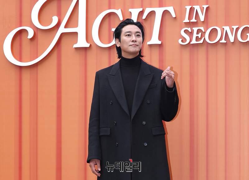페이퍼백 전속모델 주지훈이 12일 오전 서울 성동구 성수동에 오픈한 페이퍼백 팝업 '웰니스 아지트(WELLNESS AGIT)' 성수 오픈 행사에서 포즈를 취하고 있다.