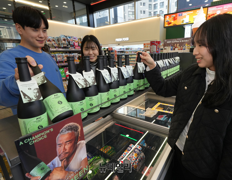 편의점 세븐일레븐(대표 김홍철)이 지난달 중순 격투기 선수 출신 추성훈과 야심차게 준비한 ‘아키그린’이 ‘편술족(편의점에서 술을 찾는 사람들)’에게 큰 인기를 얻고 있다.세븐일레븐 X 추성훈의 일본식 사케 ‘아키그린’은 초도 물량 4만병이 모두 소진, 이에 세븐일레븐은 지난 16일 2만병을 급히 추가 공수해 고객 수요 대응에 나섰다. 최근 추성훈이 온라인동영상서비스(OTT)나 유튜브를 통해 다시금 화제가 된 만큼 주 소비층은 2030 세대인 것으로 나타났다.2030세대는 전체 매출의 60%를 차지했으며 특히 가장 큰 구성비를 차지한 소비층은 30대 남성(24%)으로 나타났다. 일반 주류에서 보이는 소비 특징과 상이한 점으로는 글로벌 여성 셀럽들에 의해 불어난 ‘말차코어(Matcha-core)’ 트렌드에 힘입어 30대 여성이 그 다음으로 높은 17%의 비중을 차지했다.이러한 아키그린의 인기 요인으로는 낮은 도수(6도), 말차와 유자의 이색 풍미, 여기에 추성훈이 주는 브랜드 신뢰도 등이 꼽힌다. 판매가는 18,900원이다.한편 사케 브랜드명은 추성훈의 일본 이름인 ‘아키야마’를 걸고 ‘아키’로 기획했다. 자신의 이름을 건 만큼 진정성 있고 자신있게 선보인다는 의지를 담고 있다. 전 세계적으로 말차 맛이 유행인 점과 더불어 평소 추성훈 자신이 ‘교토맛차슈(교토말차와 유자맛이 섞인 사케의 한 종류)’를 애호하는 점을 고려해 국내 최초로 말차를 활용해 선보이는 사케 상품이다.이남구 음료주류팀장은 “세븐일레븐은 그간 신동엽, 하정우 등 다양한 연예인 주류를 선보여 왔고, 최근엔 최강록 셰프와도 프리미엄 증류식 소주를 출시하는 등 콜라보 주류에 대한 성공 포트폴리오를 구축해 나가고 있다”며 “생맥주, 와인, 전통주 등을 총 망라한 데일리 주류 맛집으로서 위치를 선점하고 있다”고 말했다. (사진=세븐일레븐)