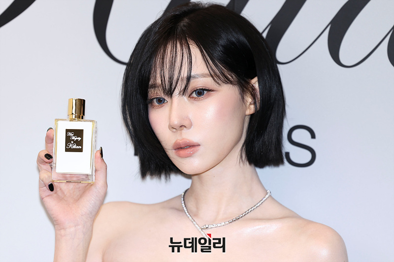 에스파 윈터가 27일 오후 서울 강남구 신사동에 마련된 킬리안 파리 도산 플래그십 스토어 오픈 기념 포토월에서 포즈를 취하고 있다.