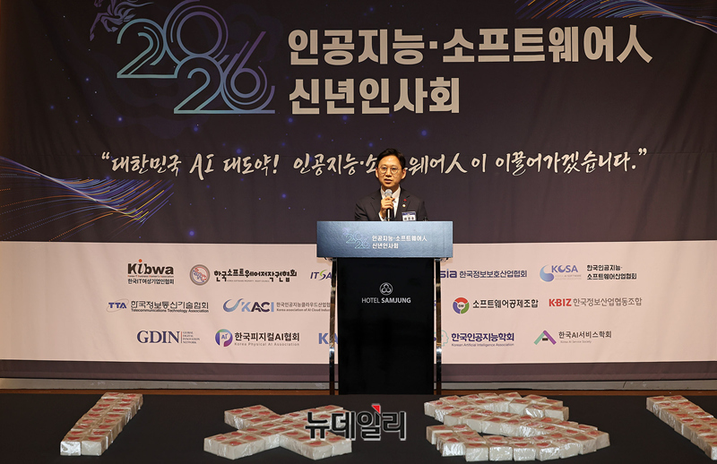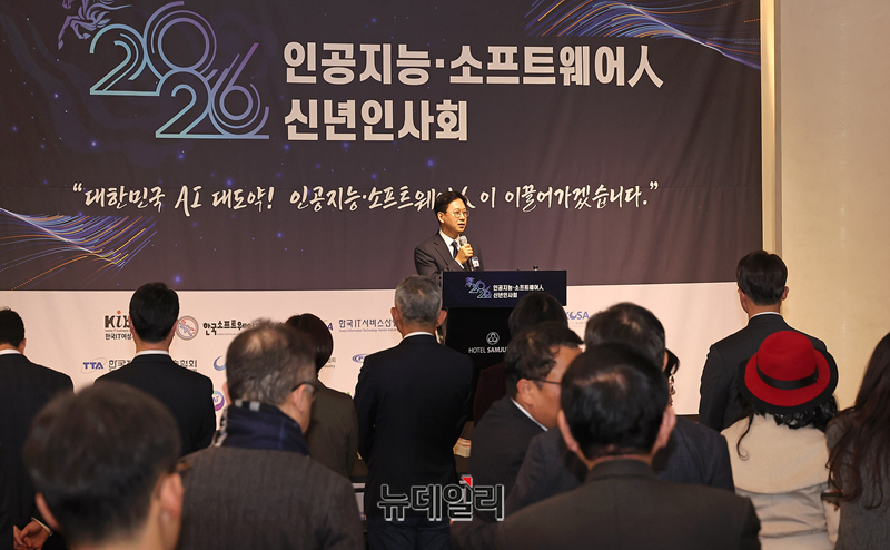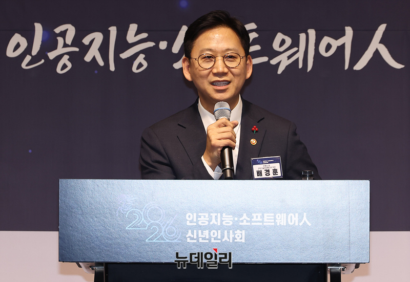 배경훈 과학기술정보통신부 장관이 29일 오후 서울 강남구 삼정호텔에서 열린 2026 인공지능·소프트웨어인 신년인사회에서 인사말을 하고 있다.