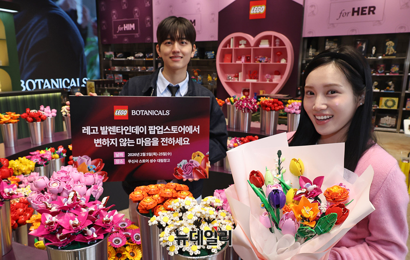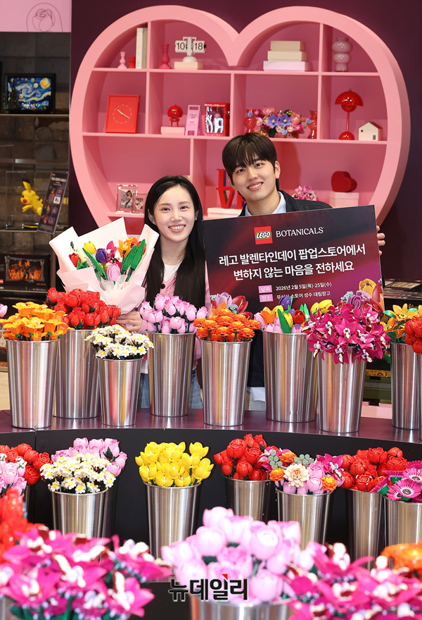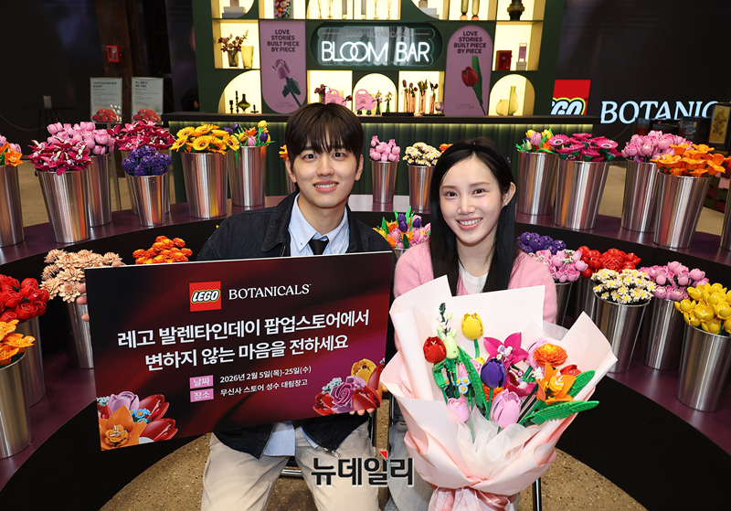 레고코리아(LEGO Korea)가 발렌타인데이를 맞아 5일 오전 서울 성동구 무신사 스토어 성수 대림창고에서 레고 꽃 수백 송이로 꾸민 ‘레고 발렌타인데이 팝업스토어’ 오픈을 알리고 있다.팝업은 레고 꽃이 피어나는 순간을 테마로 한 이색 체험 공간 ‘블룸바(BLOOM BAR)’와 레고 꽃으로 꾸민 포토존 등 다채로운 볼 거리를 선보인다. 5일부터 25일까지 운영